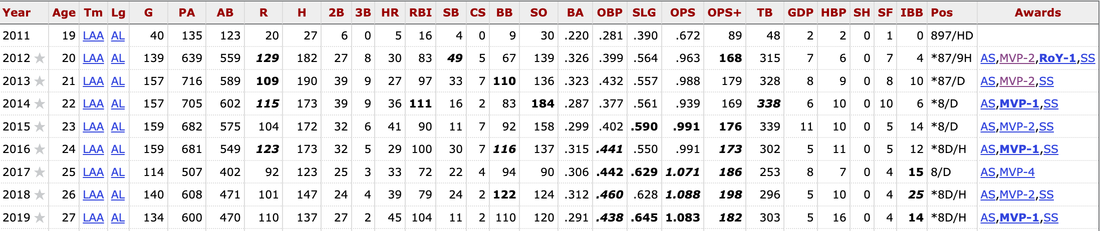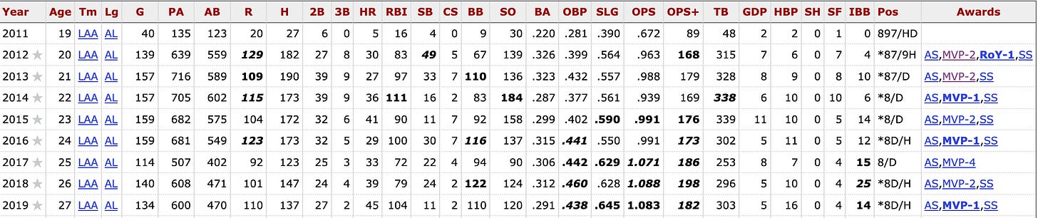 P.S. Those are only Trout’s traditional offensive statistics. His advanced metrics like WAR and defensive ratings were outstanding, too.